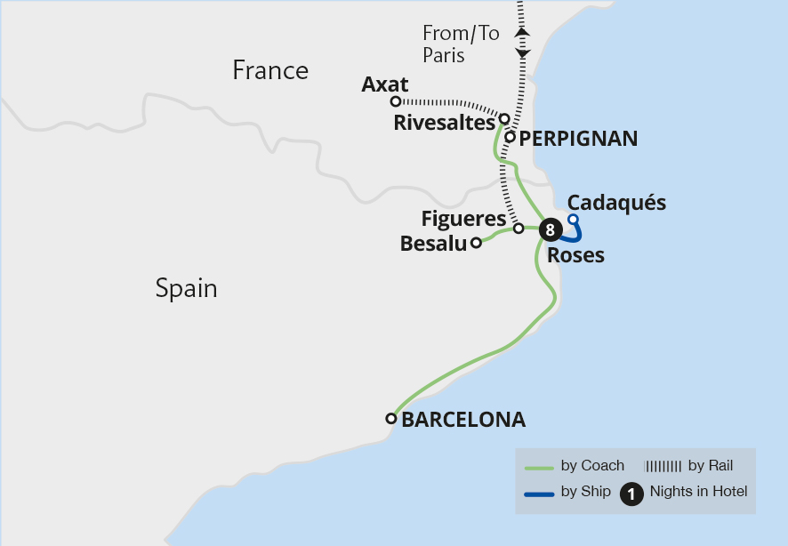 Based in the attractive coastal town of Roses, explore the rugged Costa Brava and experience the region's cultural and gastronomic highlights. Cruise around the picturesque Cap de Creus peninsula to the fishing village of Cadaqués, savouring local flavours with lunch at a vineyard. Explore Barcelona, which showcases the fantastic...
