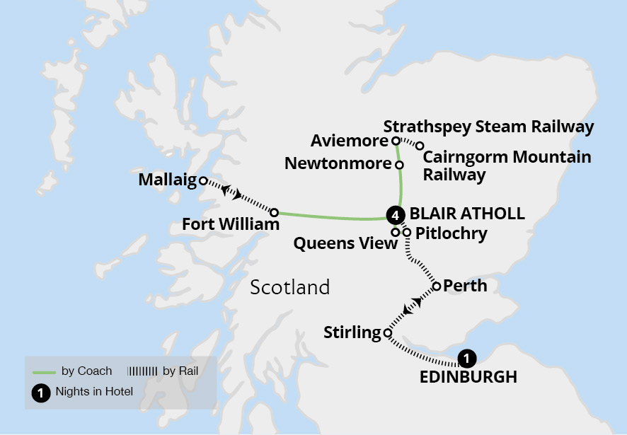 From our base in Carrbridge, we discover the very best of northern Scotland. Soak up breathtaking scenery as we travel aboard the legendary Jacobite steam train and the charming Strathspey Steam Railway. Along the way, we marvel at the towering mountains, shimmering lochs, and emerald forests that make up the Scottish landscape. Step back...