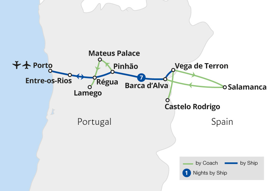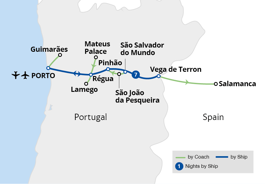 Flying in to Porto, set sail for a seven-night cruise along the Douro. Our floating hotel drifts past golden valleys, enchanting towns and wine estates as the route reveals the timeless beauty of this serene river, stopping at wonderful ports along the way. A showcase of culture, history and scenery in the Douro Valley, our journey takes us to...