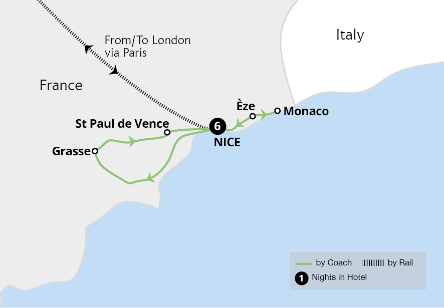 Admire the decorated floats, colourful costumes and spirited atmosphere of the captivating Nice Carnival on this rail holiday to the French Riviera. From reserved grandstand seats, bask in fantastic views of this vibrant extravaganza and explore the shimmering Côte d'Azur. Uncover the charm and history of Nice on a guided tour and watch the...
