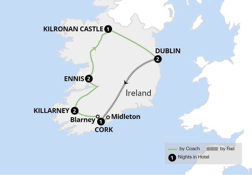 We can book rail travel from your local station to and from Holyhead to connect with this tour. Please call us for details and prices.
